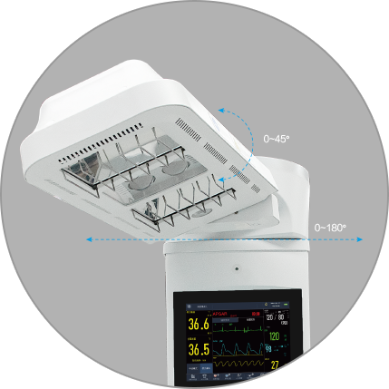 - 支持水平、垂直方位旋轉,拍X光片時輻射罩移開亦能對新生兒持續加熱,不用擔心受涼或者受冷應激張